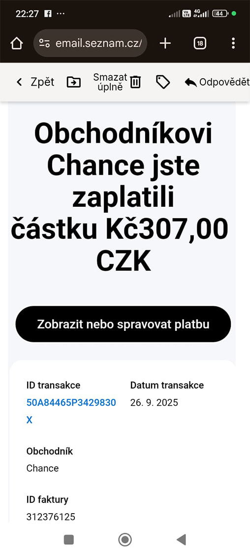 Jakmile vklad dokončíte, stačí chvillku počkat a peníze se převedou na váš účet. Na váš e-mail obdržíte zprávu o úspěšném vkladu.