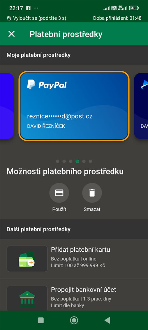 Následně je nutné se do vašeho účtu přihlásit a potvrdit vklad. Můžete si vybrat, zda chcete provést vklad ze zůstatku v PayPal peněžence nebo prostřednictvím platební karty. Pro vklad z PayPal peněženky je nutné mít českou korunu nastavenou jako hlavní měnu a mít peníze vedené v ní.