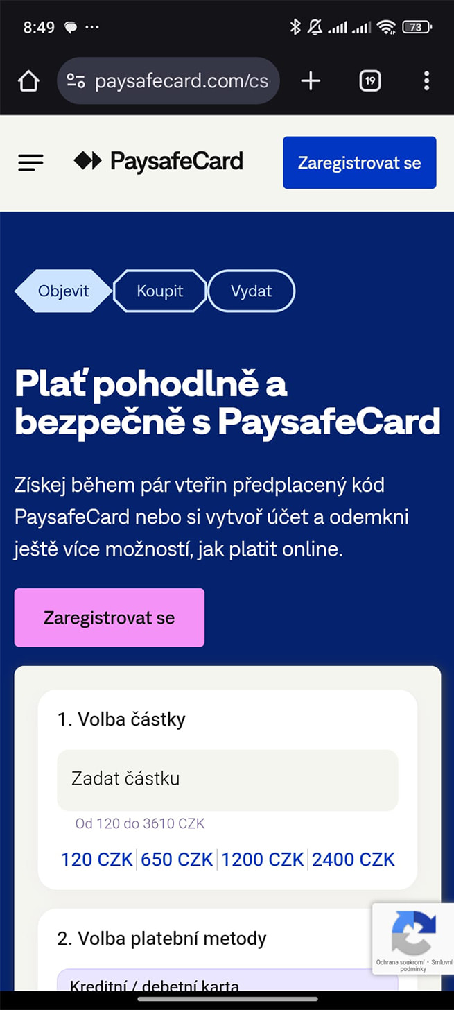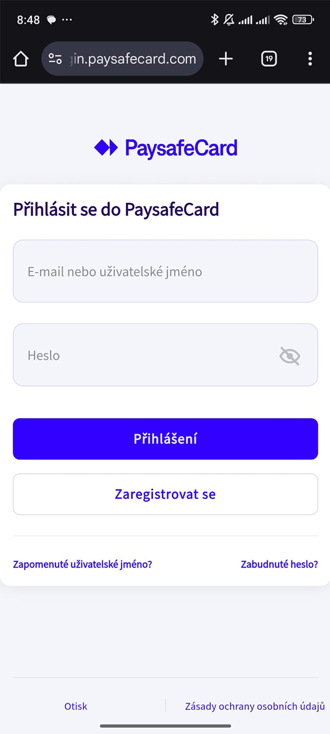 - Založte si PaysafeCard účet.