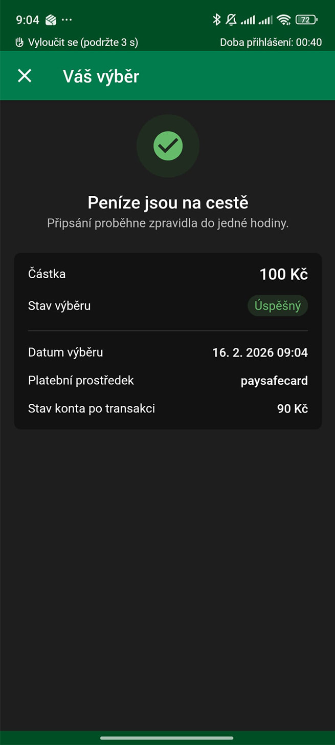 - Potvrďte platbu ve vašem PaysafeCard účtu.