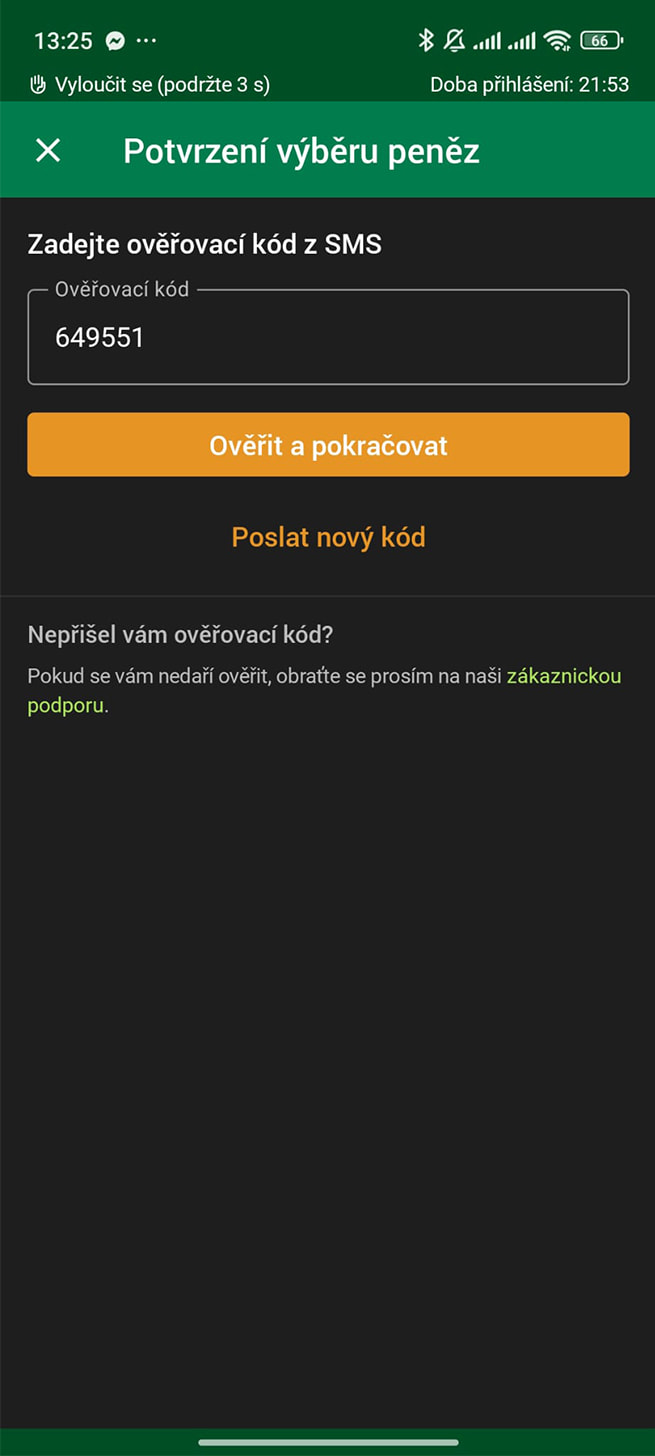 Zadejte částku, kterou si přejete vybrat. Použít můžete okýnko nebo rychlé volby.
