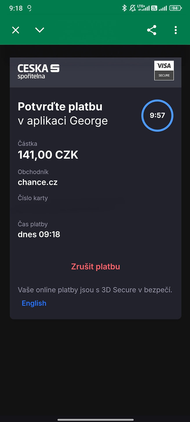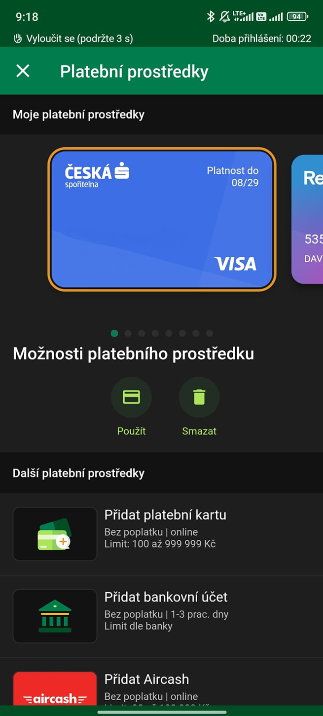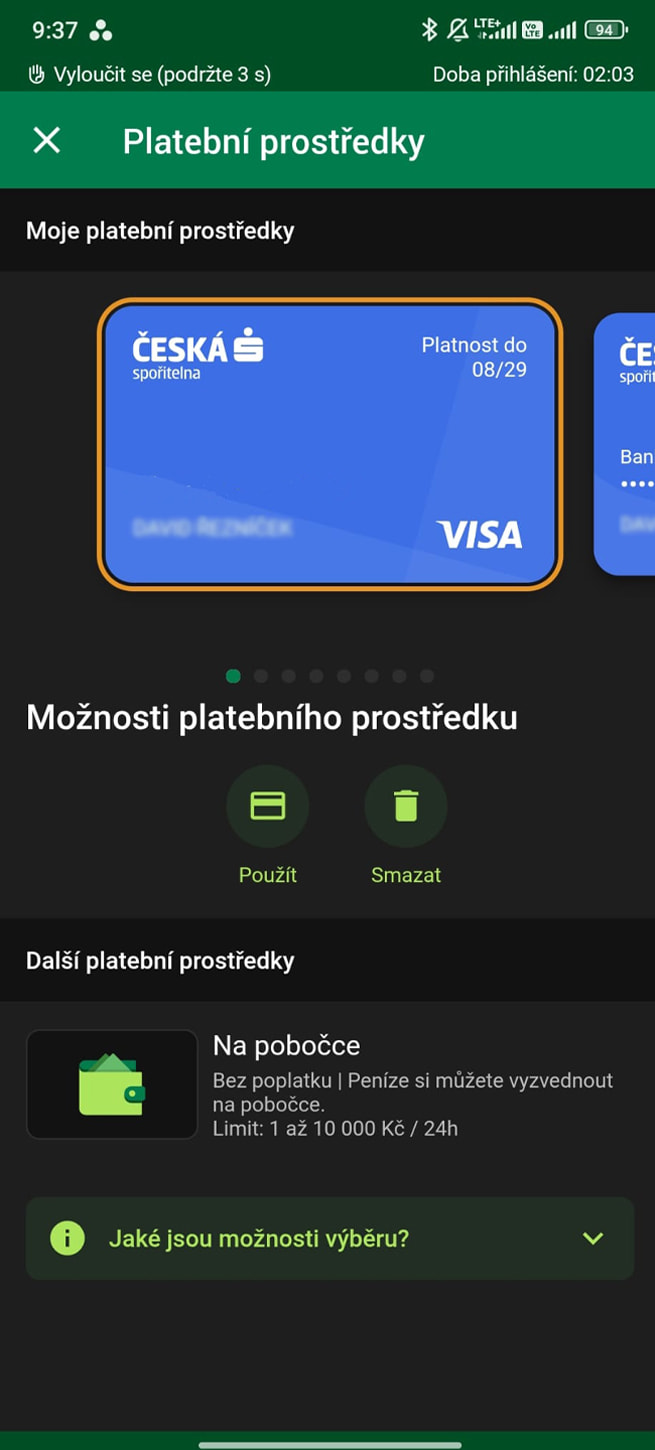 Vklad: Okamžitý, 50 Kč až 999 999 Kč, Bez poplatku