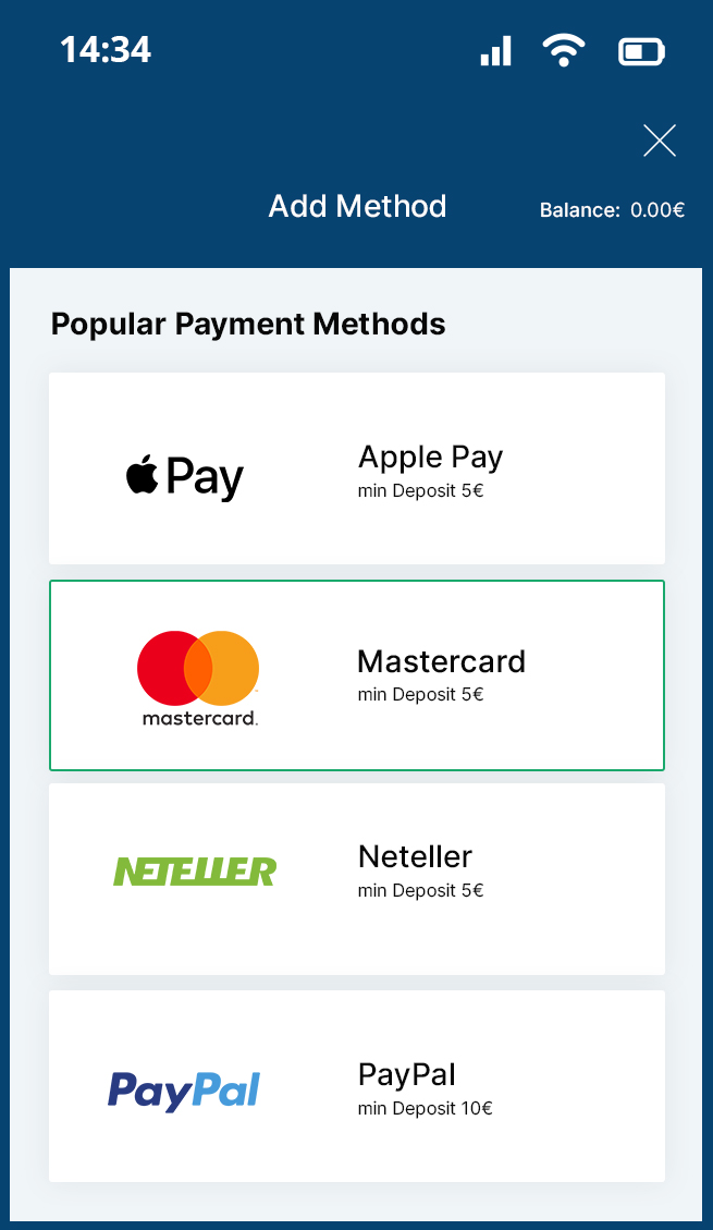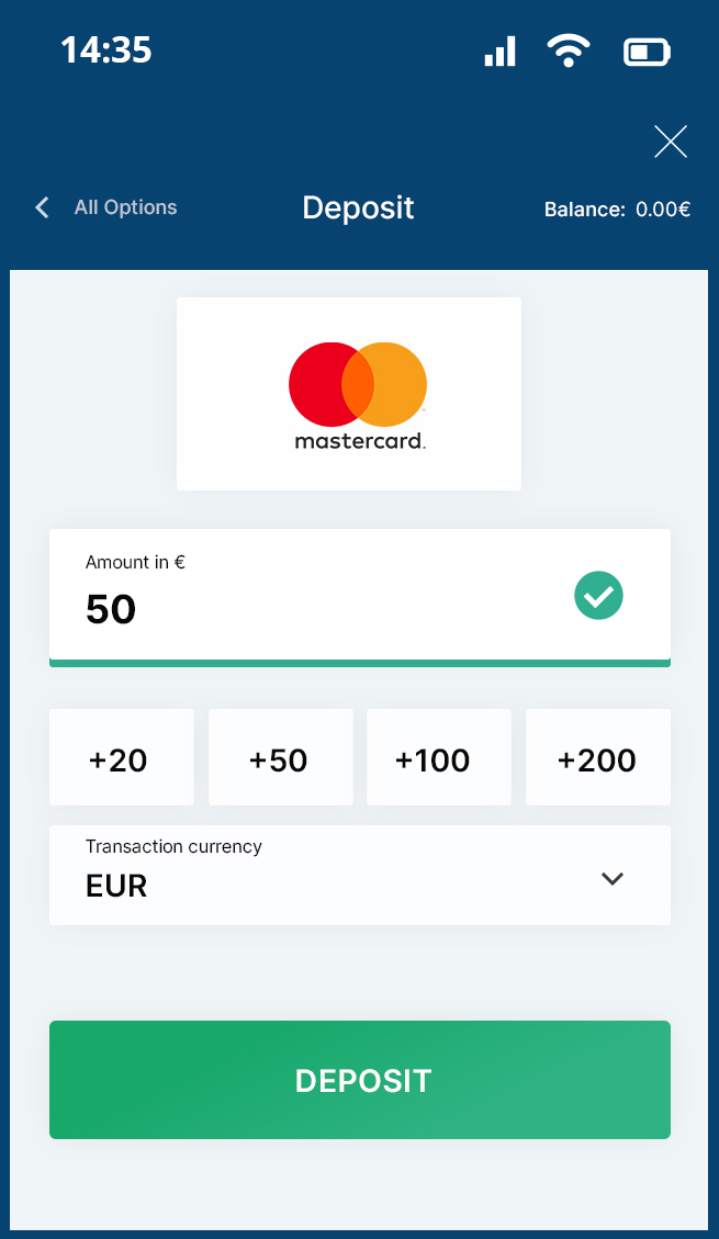 Deposit: Instant, 20€ – 4,000€, No Fee