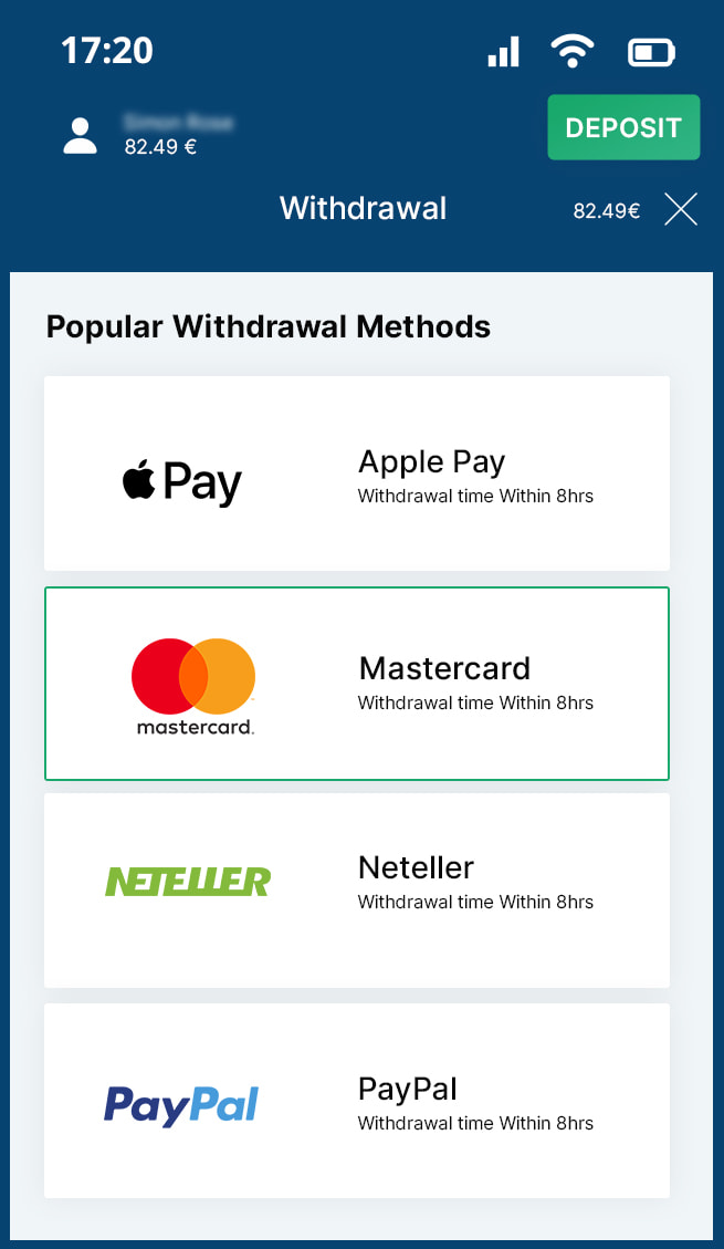 Withdrawal: 1 – 5 Days, 10€ – 2,500€/Weekly, No Fee