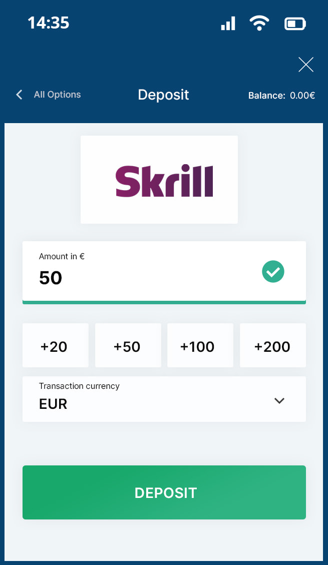 Deposit: Instant, 20€ – 4,000€, No Fee