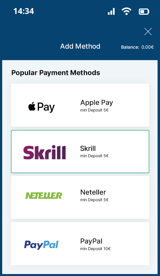 Withdrawal: 1 – 5 Days, 10€ – 2,500€/Weekly, No Fee