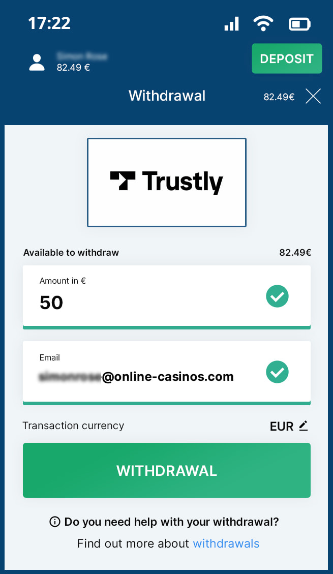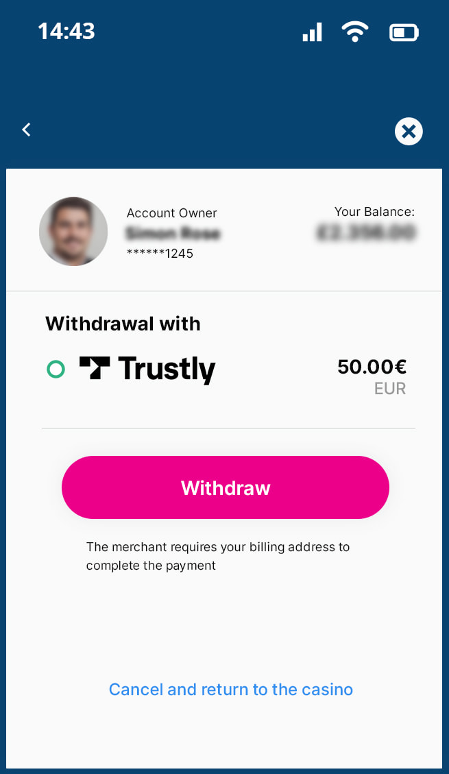 Make sure that you provide any necessary information related to your account or banking details required to finalise the withdrawal process using Trustly.