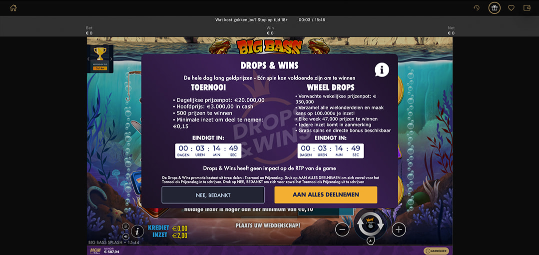 BetMGM adverteert met een welkomstpakket van maximaal 1000 Free Spins, maar het is belangrijk te weten hoe dit is opgebouwd. De directe welkomstbonus voor nieuwe spelers (24+) is 250 Free Spins voor Big Bass Splash na een minimale storting van €10. De overige spins kunnen maandelijks worden verdiend via een promotie voor bestaande spelers.