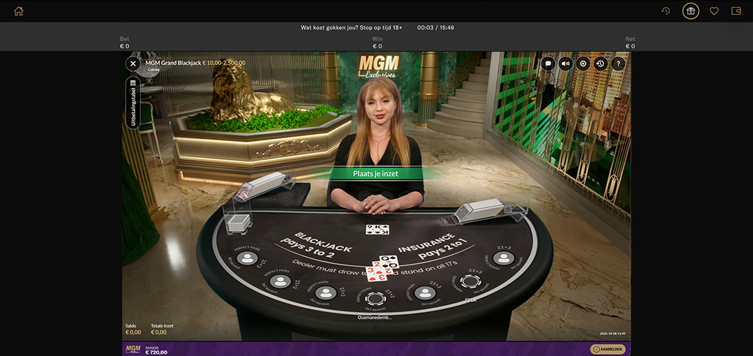 Wat dit live casino echt bijzonder maakt, zijn de exclusieve, Nederlandstalige tafels. Spellen zoals BetMGM ONE Blackjack Nederlands en BetMGM Roulette Nederlands worden geleid door professionele dealers die je in het Nederlands te woord staan. Dit zorgt voor een laagdrempelige en persoonlijke sfeer.