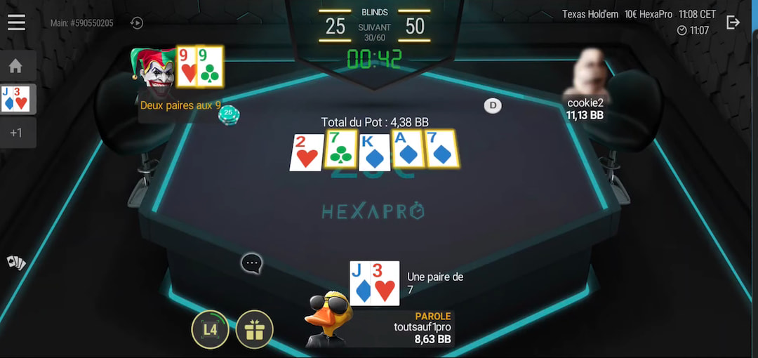 Let op: bij casino-poker (tegen de dealer) werkt dit anders; daar heb je te maken met een vast huisvoordeel (RTP). Bij Texas Hold’em tegen anderen is je winst afhankelijk van je eigen skills ten opzichte van je tegenstanders, minus de rake die het platform inhoudt.