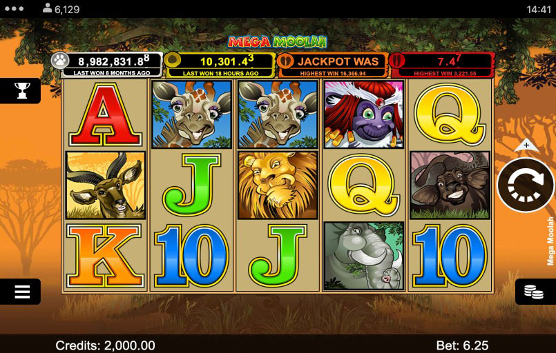 Het basisspel is verrassend simpel voor zo’n legendarische titel. Een klassiek 5×3-grid met 25 winlijnen en een Afrikaans safari-thema. De graphics voelen gedateerd dit spel is bijna 20 jaar oud maar de jackpot-mechanic houdt het relevant.