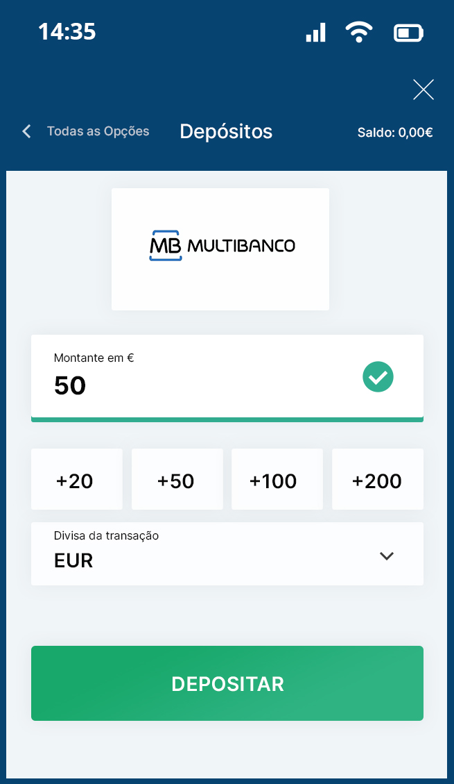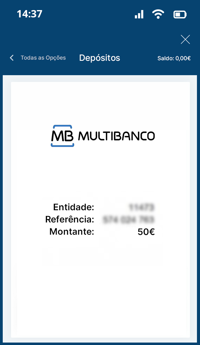 Depósitos: Imediatos, 0,01€ - 5.000€ - Sem taxas