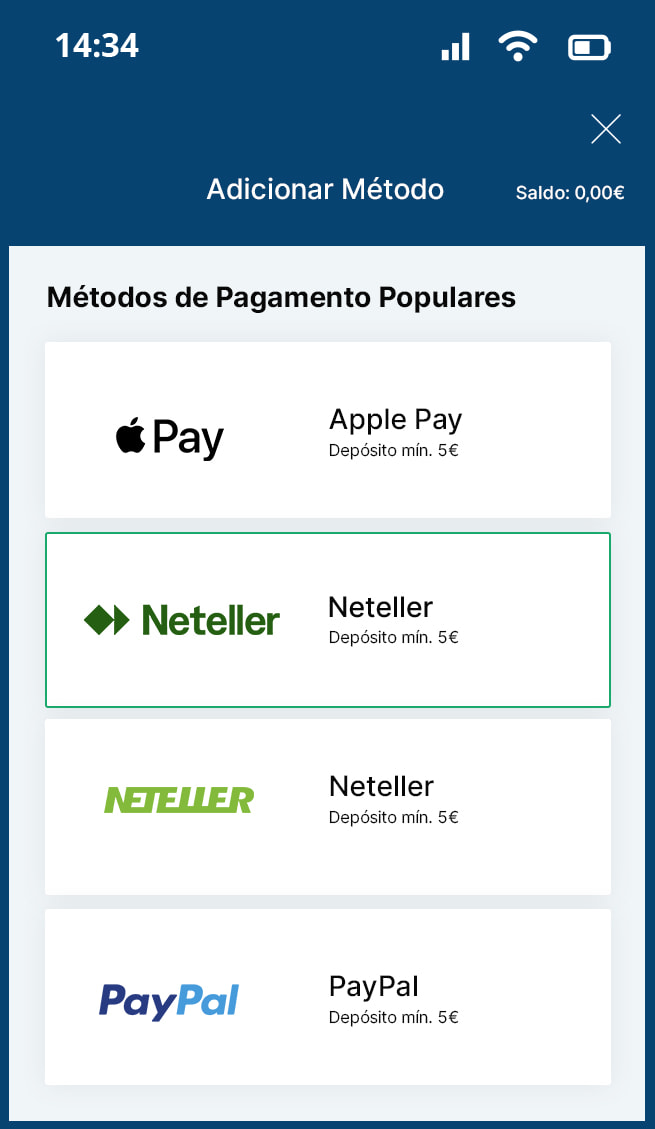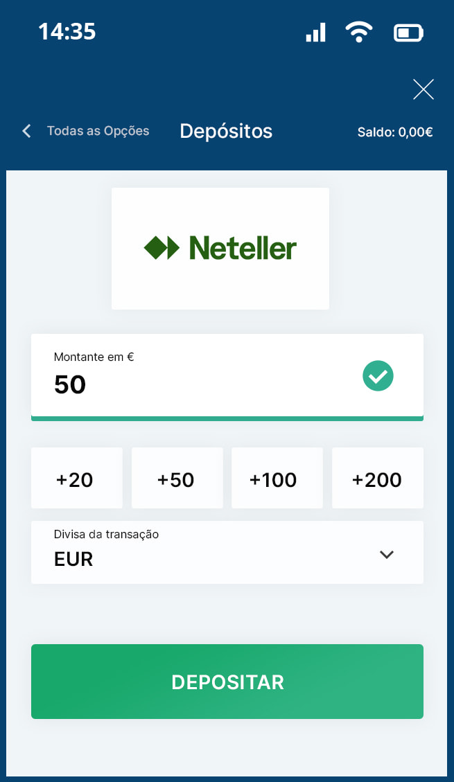 Depósitos: Imediatos, 0,01€ - 5.000€ - Sem taxas