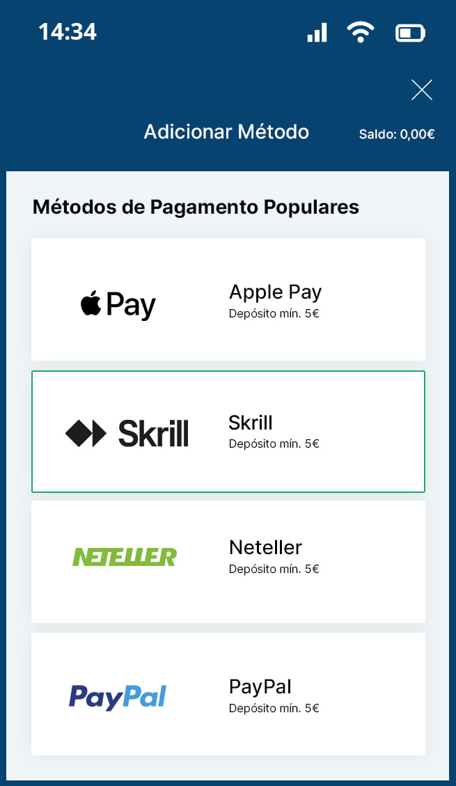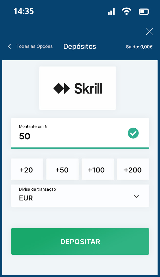 Depósitos: Imediatos, 0,01€ - 5.000€ - Sem taxas