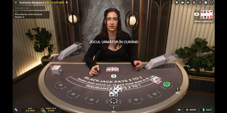 Bucharest Blackjack de la Evolution este o masă live dedicată publicului român, cu dealer vorbitor de română. Păstrează regulile clasice, cu pariuri Bet Behind, 21+3 și Perfect Pairs.