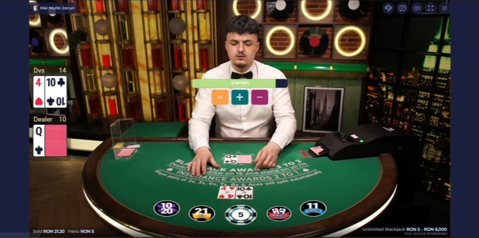 Ai variante de mese live de blackjack la care dealerul este vorbitor de limba română sau engleză. Sunt chiar variante cu multiplicatori pe anumite câștiguri.