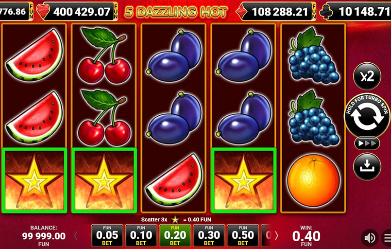 Slotul Play 5 Dazzling Hot, dezvoltat de providerul Amusnet, aduce farmecul clasicelor păcănele cu fructe într-o versiune modernă. Jocul include 5 role, 5 linii fixe, RTP de 95,74% și volatilitate redusă. Printre punctele forte se numără mini-jocul Jackpot Cards, simbolul Șapte și rundele gratuite aleatorii.