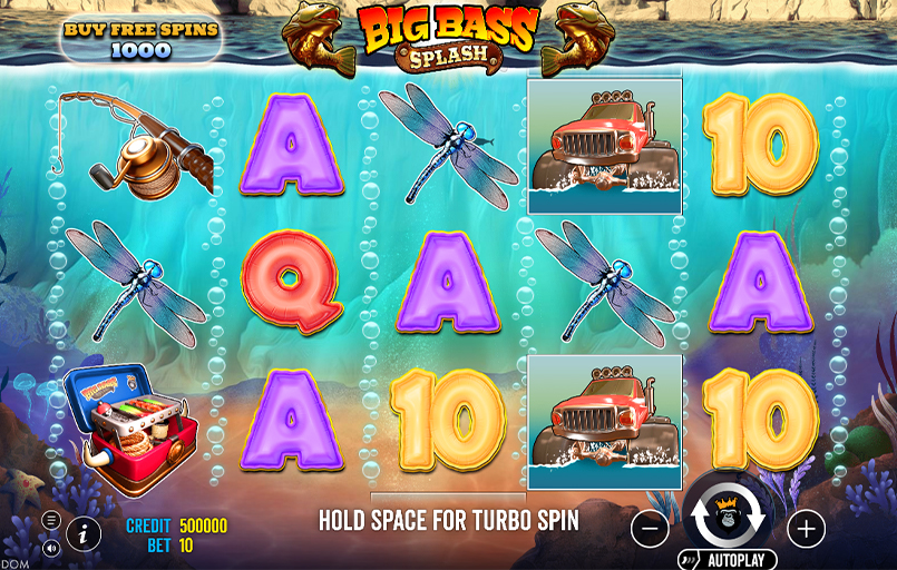 Big Bass Splash se joacă pe o grilă de 5 role și 3 rânduri cu 10 linii de plată. Câștigurile apar când simbolurile identice se aliniază de la stânga la dreapta pe liniile active, începând cu prima rolă.