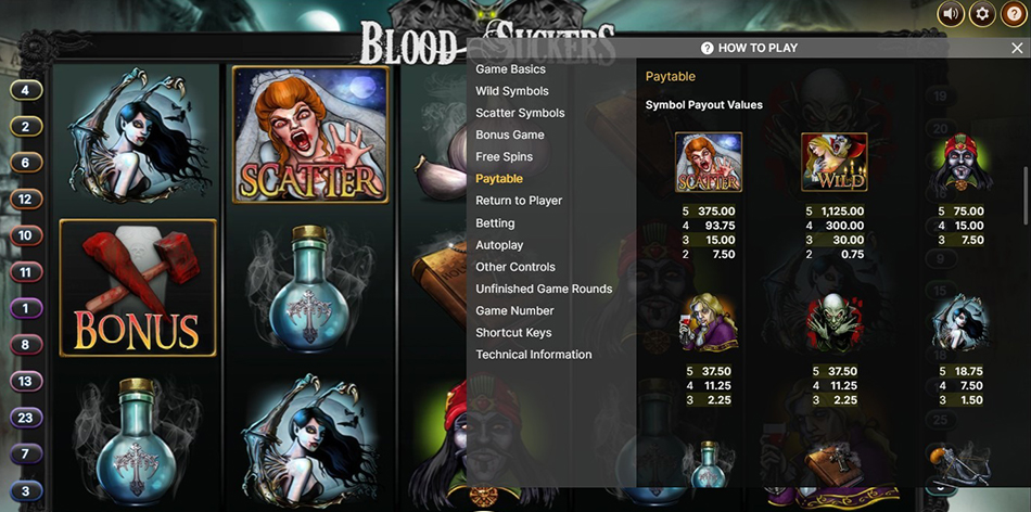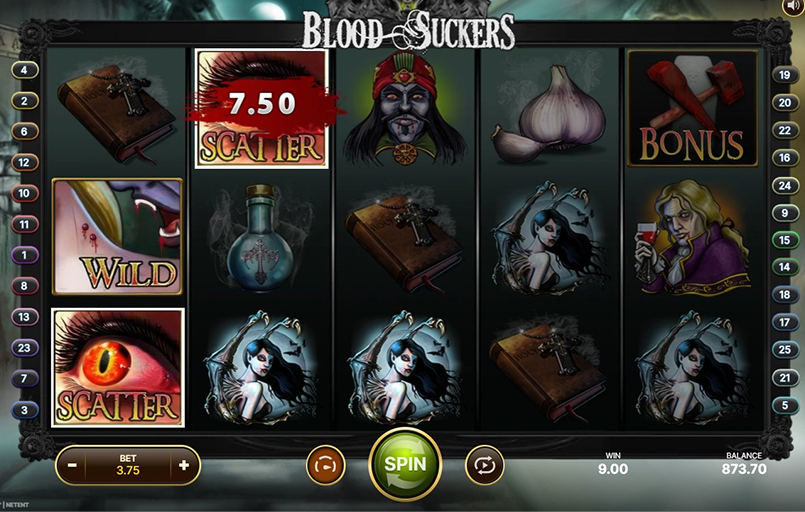 Blood Suckers include funcții clasice precum Wild, Scatter, runde gratuite și un joc bonus interactiv. Gameplay-ul este rapid și bine echilibrat, iar frecvența câștigurilor menține interesul, chiar dacă grafica este mai simplă comparativ cu sloturile moderne.