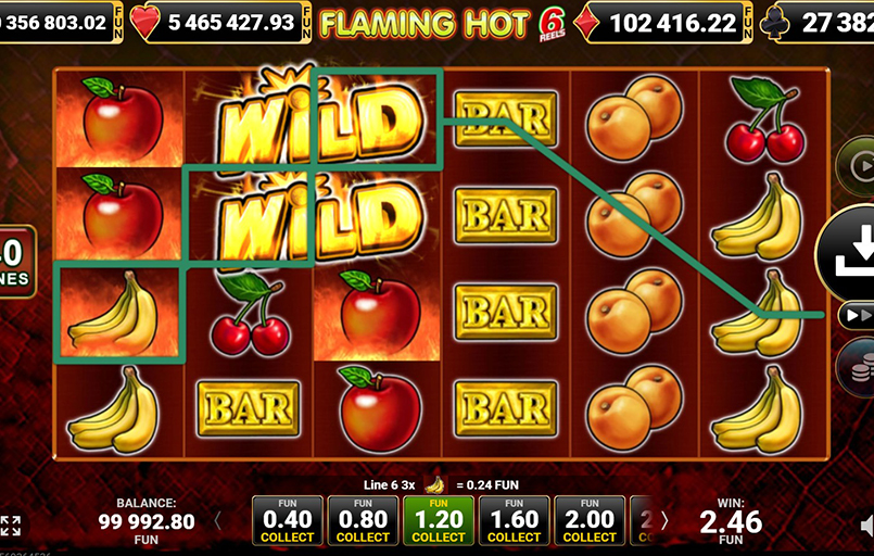 Flaming Hot 6 Reels se joacă pe 40 de linii fixe, active la fiecare rotire. Câștigurile se formează de la stânga la dreapta. Miza variază între 0,40 și 80 per spin, iar funcția Gamble poate dubla câștigurile obținute.