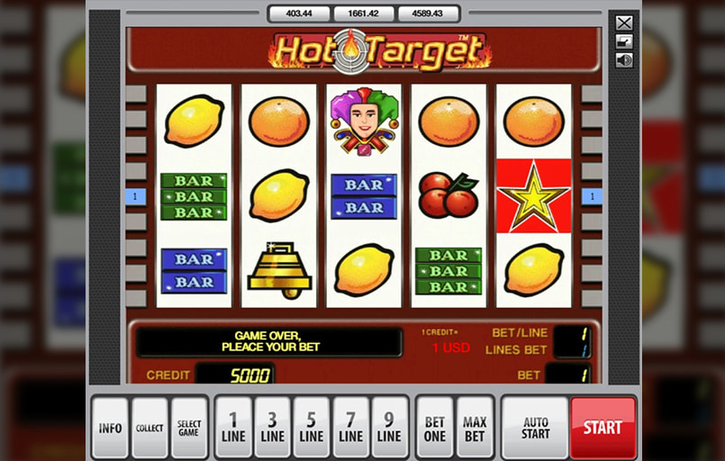 Hot Target este un slot clasic dezvoltat de Novomatic, lansat în perioada în care studioul a cucerit piața globală a aparatelor old-school. Jocul oferă 5 role, 9 linii active, multiplicator maxim x5000 și rotiri gratuite cu simbol Bonus care dublează câștigurile.
