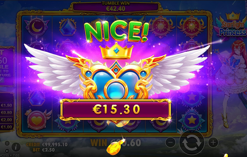 Simbolurile din Starlight Princess sunt împărțite în două categorii: pietre colorate cu valori mai mici și simboluri premium precum inimi, stele, luni și soare. Cele premium oferă cele mai mari câștiguri atunci când apar în număr suficient.