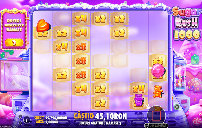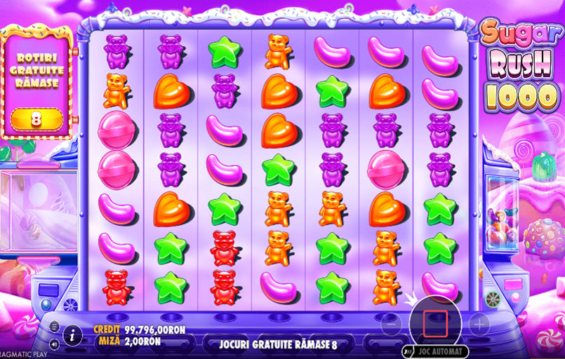Sugar Rush 1000 slot online este un produs Pragmatic Play, lansat în 2024, cu tematică dulce, inspirată de bomboane și deserturi colorate. Jocul include simboluri Scatter și multiplicatori, câștiguri în cascadă, joc bonus cu rotiri gratuite și alte funcții speciale atractive.