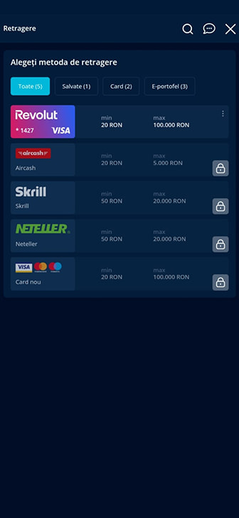 Termeni & Condiții se aplică 18+, doar pentru clienții noi, 100% până la 1.000 RON + 300 rotiri gratuite; depozit min. 25 RON; cerințe de pariere 35x (pariuri sportive 99x); 35x câștigurile din rotirile gratuite; valabilitate 30 zile. Rotirile gratuite se eliberează progresiv, 150 de rotiri gratuite nu au condiții de rulaj. Skrill, Neteller, TopPay și PaysafeCard nu participă la promoție. |