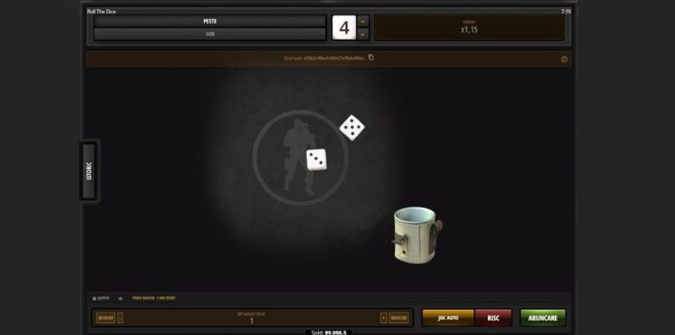 Roll the Dice, pariu setat peste 4, multiplicator de câștig 1,15x.
