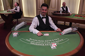 2/4 Live Blackjack Masa clasică de blackjack de la Evolution are 7 locuri disponibile pentru pariere. Se joacă contra casei conform regulilor clasice, scopul fiind acela de a acumula 21 de puncte. Dacă nu găsești loc la masă poți folosi oportunitatea Behind Bet.