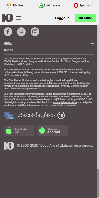 18+ www.stodlinjen.se Välj innan 1:a insättningen. Casino. Min. insättning 100 kr. Max bonus 500 kr + 20 gratissnurr. Omsättning: 20x Insättning + Bonus. gratissnurr måste omsättas 10x. gratissnurr på utvalda spel. Olika omsättningskrav gäller beroende på spel. Inom 60 dagar. Regler och villkor gäller.