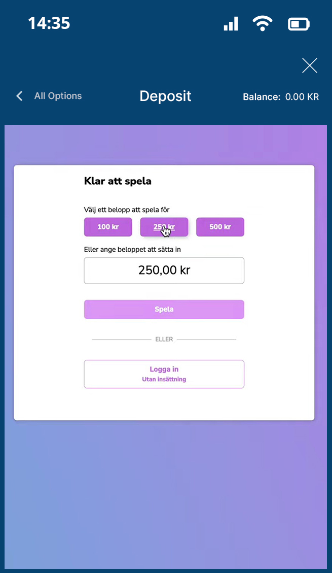 Deposit: Instant, 100 KR – Unlimited, No Fee
