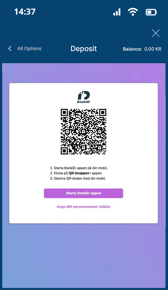Deposit: Instant, 100 KR – 50 000 KR, No Fee