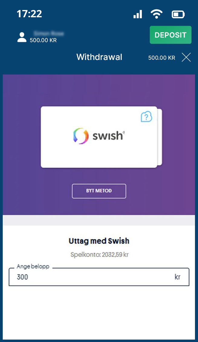 Withdrawal: Up to 24 Hours, 200 KR – 150 000 KR, No Fee