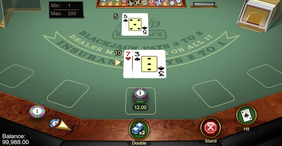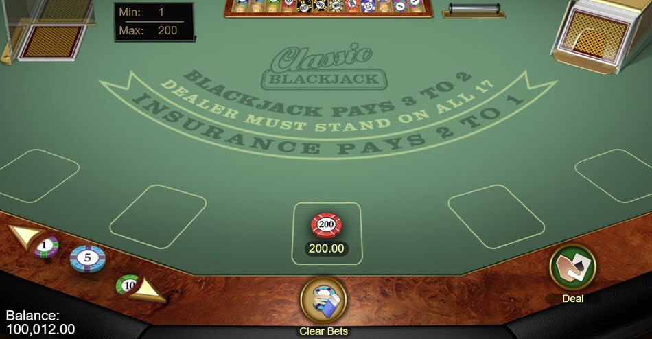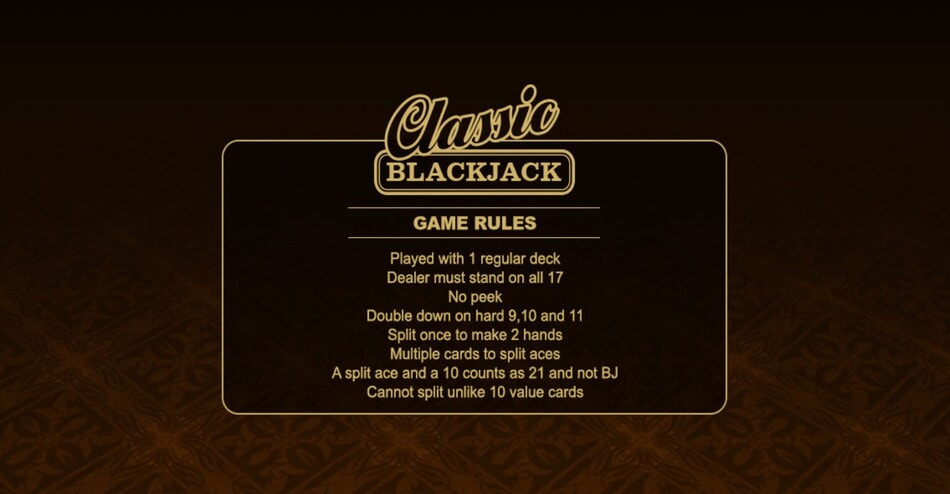 Classic Blackjack Gold, available at the best Microgaming online casinos, is played with a single standard deck in a single-hand format against one dealer. The dealer stands on all 17s and does not peek for blackjack.