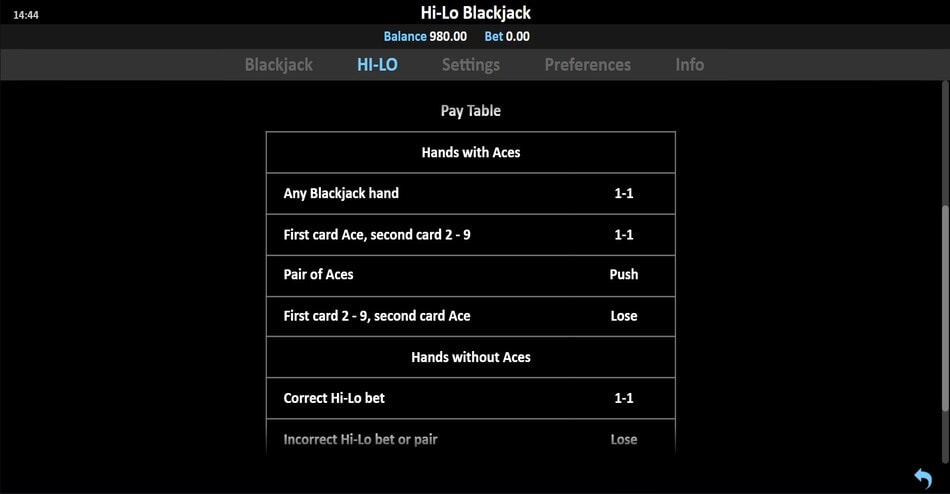 This review covers the complete ruleset, side bet mechanics, and player options for Hi Lo Blackjack. Read on to understand how the six-deck format and proprietary side bet work together in this variant.