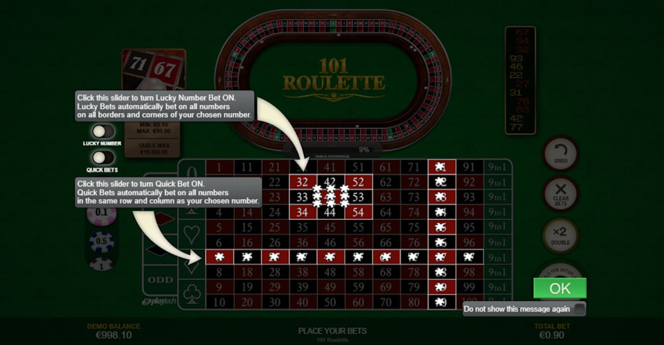 101 Roulette includes features to help manage your betting choices. The Repeat Bet uses your previous bet in one click, while the Undo and Clear Bets buttons are useful whenever you change your mind.
