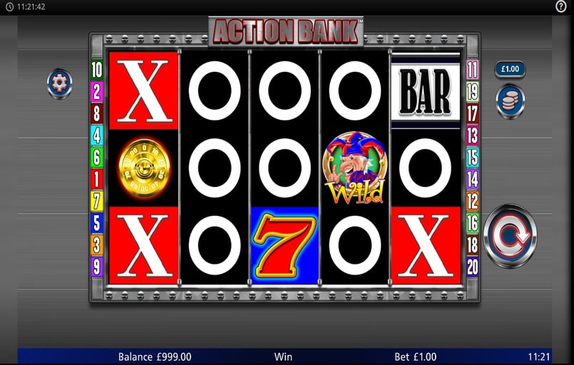 Only three main symbols are included on the 5×3 reels, with the O not paying out at all. The joker wild icon can swap in for any paying symbol – the X, 7 or BAR icon – to create a winning combination on the Action Bank slot from Barcrest.