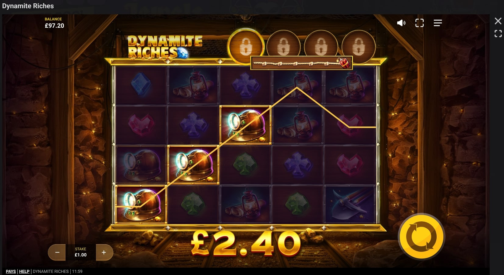 Red Tiger’s Dynamite Riches is a well-designed mining slot where it’s all about collecting dynamite wilds to unlock features. There are four you can unlock, plus there’s a free spins round that can retrigger.