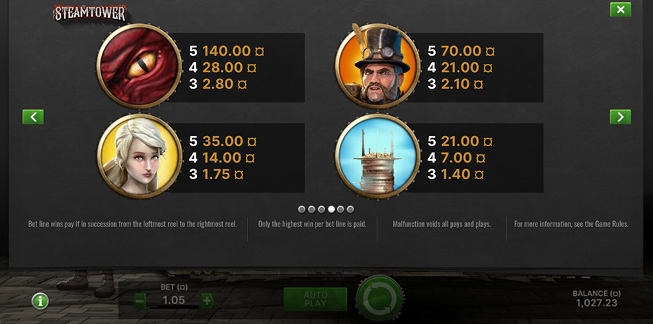 Steam Tower is a well-designed slot centred on a tall tower whose top is where you’ll find a dragon. Trigger free spins and you might just make it to the highest floor and earn an extra payout.