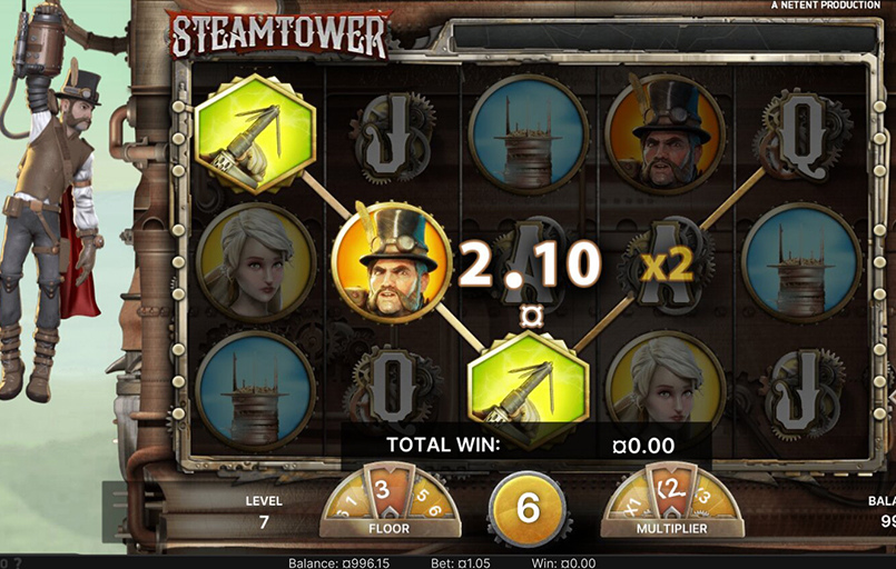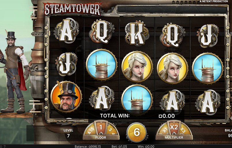 Steam Tower is an online slot from NetEnt that was released in 2015. It has an interesting steampunk theme and its concept is that you’re climbing a tower to reach a dragon. The medium volatility slot has an impressive RTP of 97.04% and a top payout of 1,633x.