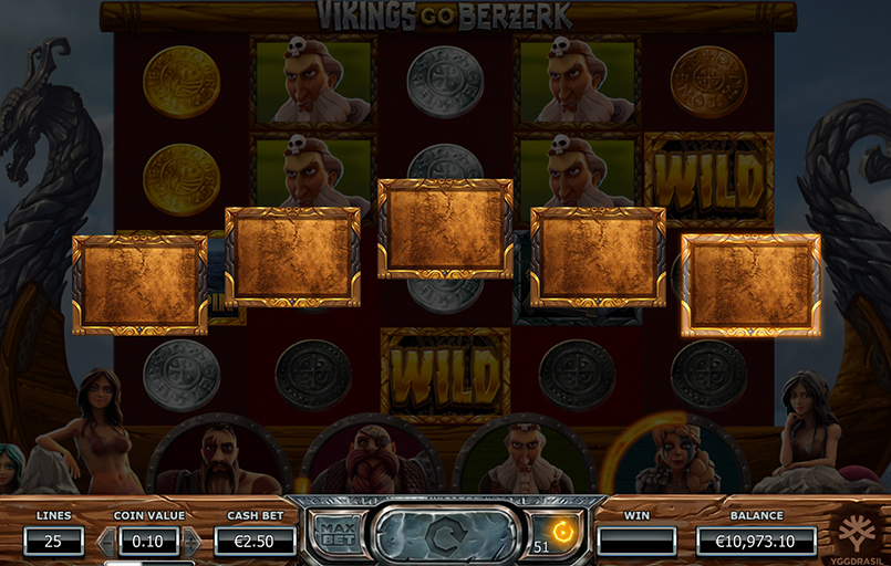 Vikings Go Berzerk is a well-presented online slot with a Viking theme. The reels are set within a wooden board on a typical viking longship that’s out at sea. There’s a lot of detail, especially in the character symbols.