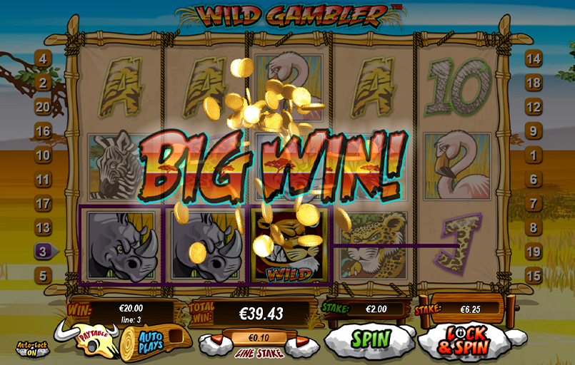 There are more than 700 online slots in Playtech’s portfolio. Wild Gambler is one of several animal-themed slots from the provider. It has 20 paylines, a free spins round and a unique feature that lets you add and lock wilds in place for an extra cost.