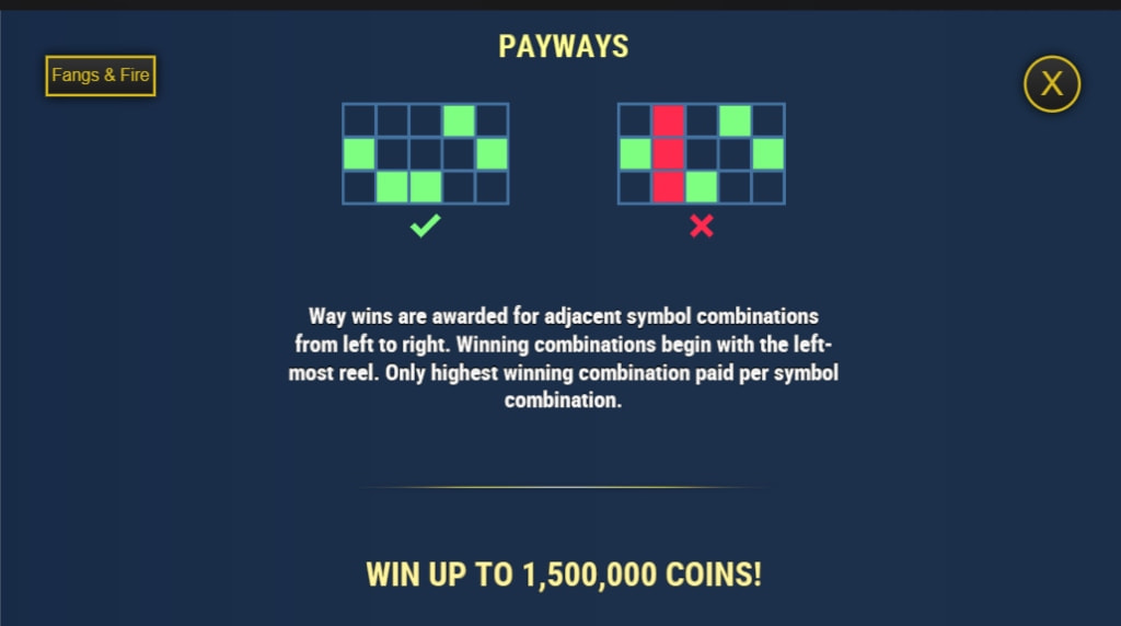 In the sections below, we’ll walk you through the key Fangs & Fire slot game details. We’ll focus on gameplay mechanics, special features, bonus features, and payout rates. You’ll also get our unbiased opinions having tested this online slot ourselves.