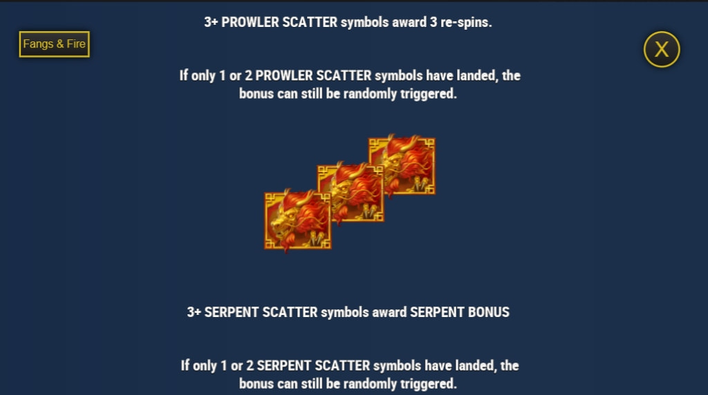 Learn these terms if you’re going to play Fangs & Fire: Prowler, Serpent, and the powerful combined bonus feature.